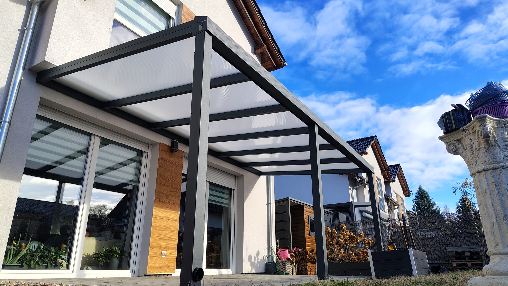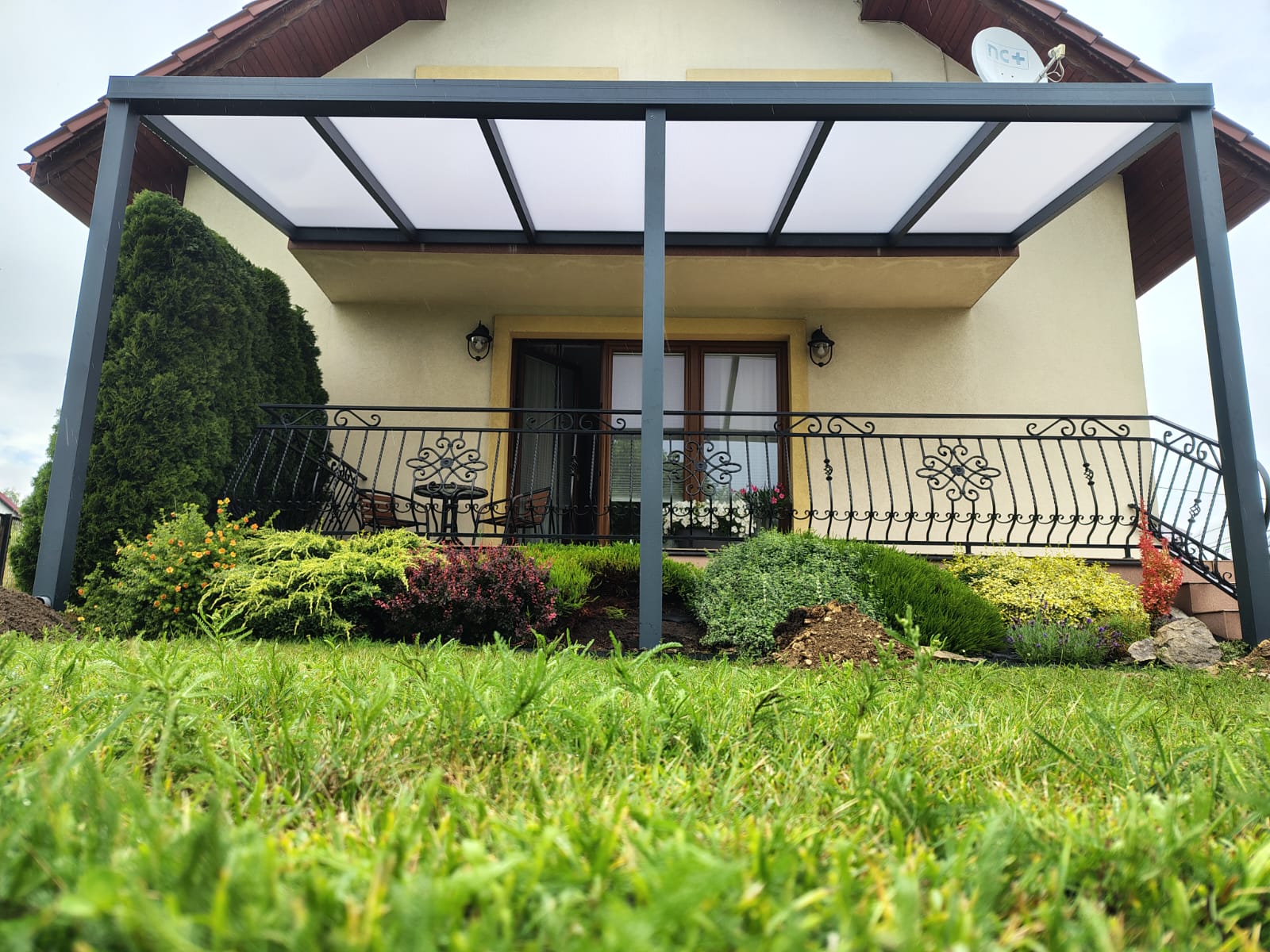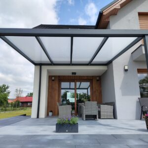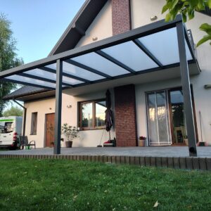 - Zadaszenie tarasu POLIWEGLAN długość wzdłuż budynku 300cm x szerokość (strona spadu) 300cm