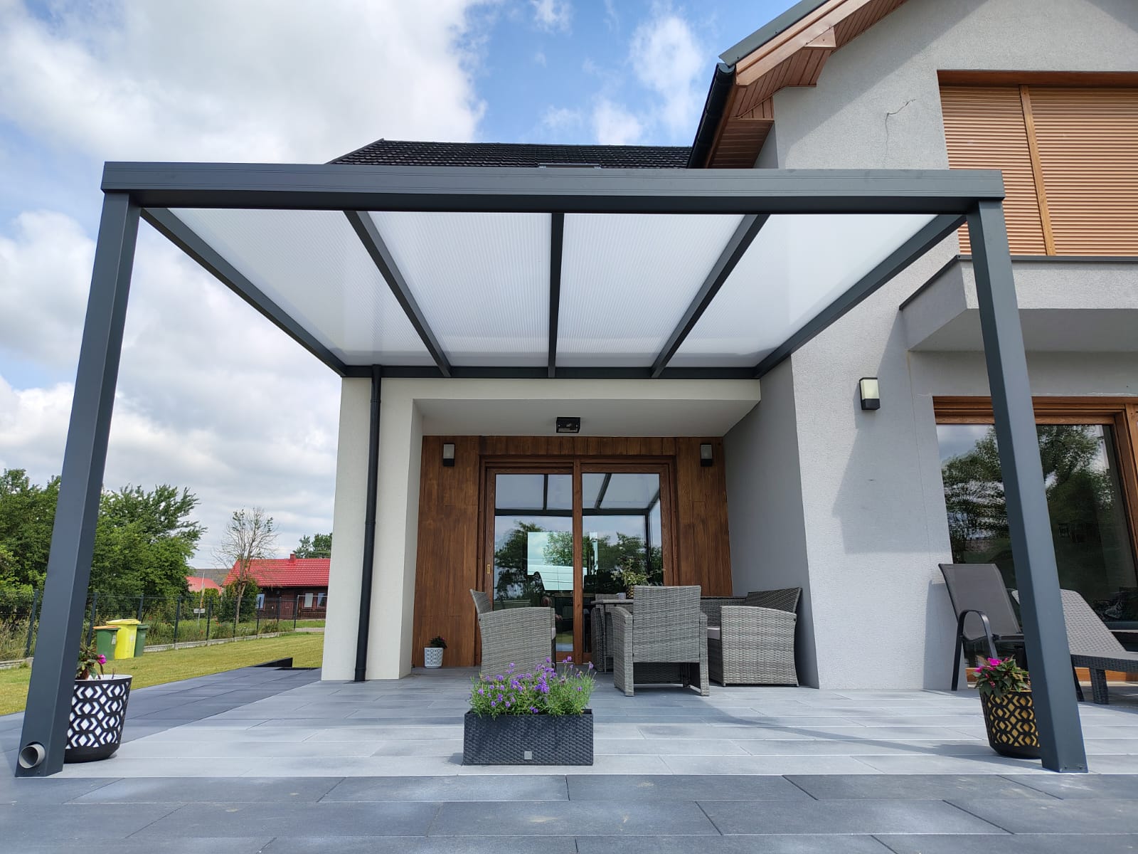 - Zadaszenie tarasu PATIO długość wzdłuż budynku 600cm x szerokość (strona spadu) 300cm